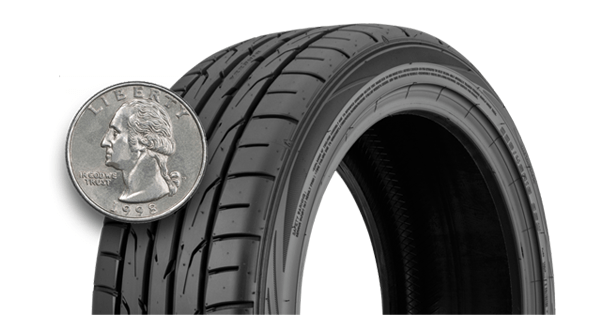 You can measure the tread on your tires in as much as it takes to get in and start your Lexus. See for yourself. Simply grab a quarter and find the groves that go around your tire. Turn Washington upside down and insert him headfirst into a groove. If you can see the top of his head, it’s time for new tires.
